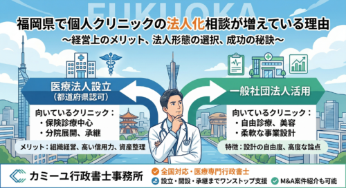 そのため、将来的に分院の設立や介護事業施設などの事業展開を視野に入れている場合は、法人化する必要があります。