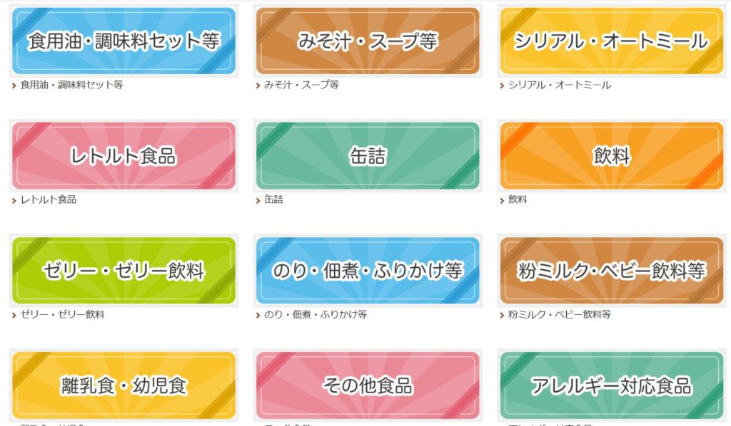 例えば、食料品セットはこちらのようにカタログから選ぶ形式になっています。