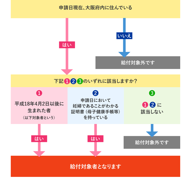 対象者本人の住所が大阪府内であれば申請できます。(住民票の添付が必要)