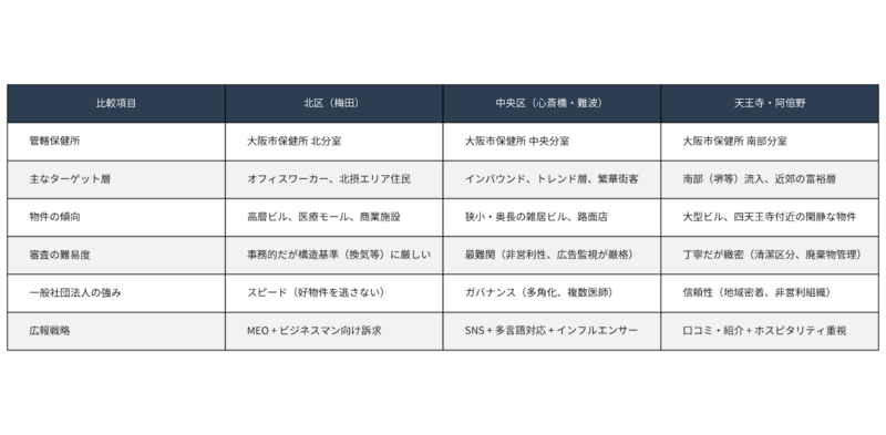 天王寺・阿倍野の住民(特に古くからの居住層)は、医療機関に対して高い信頼性を求めます。株式会社でのクリニック運営(MS法人を通じた実質運営)よりも、「一般社団法人」という非営利的な響きを持つ法人格は、地域密着型のブランディングにおいて強力な武器になります。